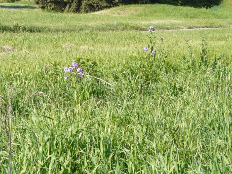 The pictures below show the invasive plant, Dame's Rocket (Hesperis matronalis) and its pretty purple flowers. Don't be fooled! These pretty flowers are choking out the native vegetation along the creek and degrade the habitat!