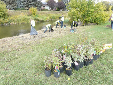 The site was revisited the spring and summer of 2015 to look at tree sapling establishment. In the fall of 2017 the site was extended to include another reach further to the west of the original site. Volunteers with GO GREEN FRIDAY helped to plant native trees and grasses after the banks were cleared of brush, debris, and the invasive plants such as Field Bindweed, Canada Thistle (Cirsium arvense) and Dame's Rocket (Hesperis matronalis).