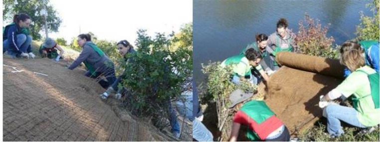 The area was then covered by the rest of the vegetation cut and more seeds were distributed. All materials were re-used in the project and there was no waste of natural materials.
