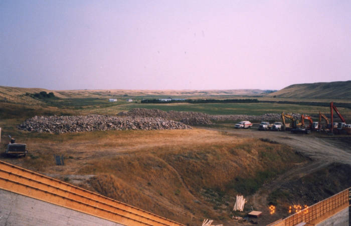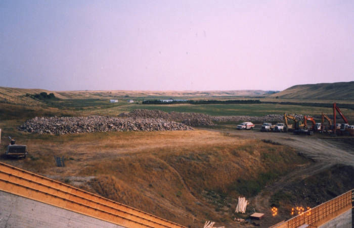 The dam is 62 feet (19 meters) high and 2000 feet (610 meters) long. The reservoir holds 85124 acre feet of water which is the amount of water required to cover an acre of land to a depth of twelve inches. This is a storage capacity of 105,000 dam3 which is enough to fill almost 50,000 Olympic size swimming pools. This dam was owned by the Government of Canada and was operated by Agriculture and Agri-Food Canada, however ownership and management was recently transferred to the Province of Saskatchewan’s Water Security Agency (WSA).