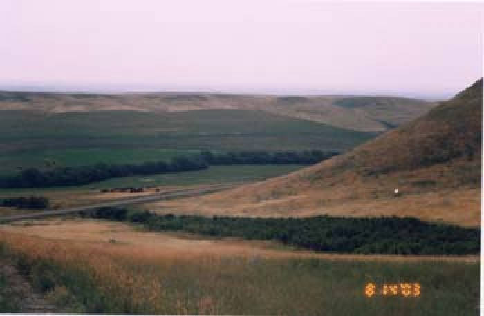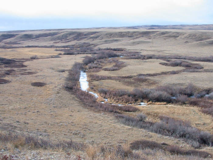 Jones Creek starts north of Eastend and joins Swift Current Creek on the NW quarter of Section 5 Township 8 Range 20 West of the 3rd Meridian (Co-ordinates 49.622004, -107.686908). This creek flows to the north east and then takes a bend and flows south east to join with Swift Current Creek. The spring that becomes Jones Creek is not as large as that for Swift Current Creek, but it is every bit as clear and fresh. Jones Creek, which flows through Jones Coulee, was named for Henry Jones. He was an early pioneer from England who started ranching here about 1885 and left the area in 1891.