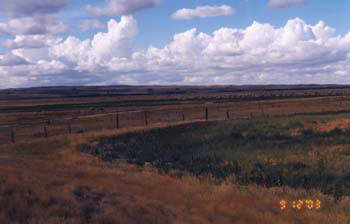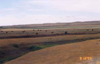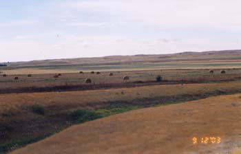 The Rush Lake Irrigation Project commonly referred to as the Rush Lake flats or the lake is 5868 acres (2376 hectares) of flood irrigation. The lake at Rush Lake was drained to facilitate the construction of the CPR railway through it to create a more direct route as the railway originally went around the north side of the lake. In the 1950’s the PFRA started construction of an irrigation project that would use water stored at the newly constructed Duncairn Reservoir. Approximately 3,200 acres north of the CPR railway which bisects the project were constructed using the border dyke system of irrigation, this area of land is often referred to as the Intensive Irrigation portion of the project. This had been successfully used in other areas, including Eastend on the Frenchman River system. This consists of levelling the land and creating parallel dykes, 15 cm high at about 15 meter intervals to contain the water as it moves downslope. This resulted in increased forage production, reduced labor and fuel costs compared to pumping and sprinkling water onto the land, however it also means less efficient water usage. The other 2,600 acres which are south of the railway are irrigated using back flood irrigation. The “Southside” is irrigated in early March when run-off from the Rush Lake Basin is blocked from entering Lizard Creek and then spreads over the land to irrigate it. Once the land has been covered or there is no more water flow in, the water is released to Lizard Creek and eventually ends up at Reed Lake in Morse. Excess water from the North side irrigation also flows to Lizard Creek. Some of the land on the east side of the project north of the railway tracks can be either back flooded or intensively irrigated.